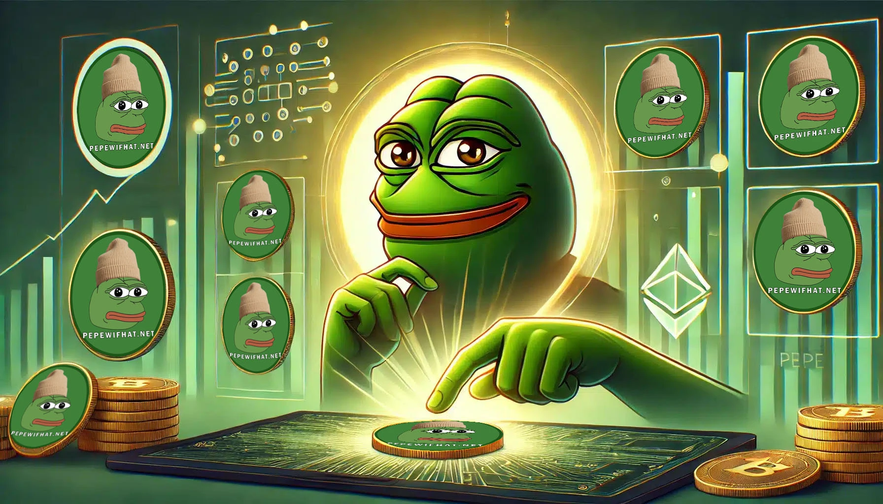 Legend has it that PepeWifHat was born in the chaos of a particularly raucous meme battle. From the depths of internet culture emerged our hero, Pepe, decked out in a stylish top hat and ready to take on the world of cryptocurrency with a wink and a grin.
